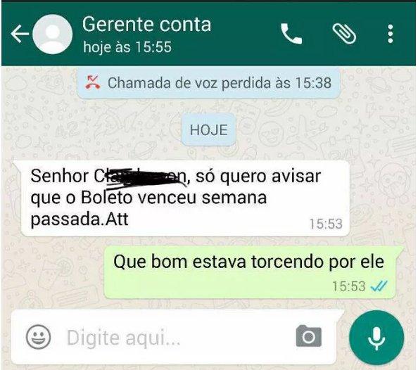 Não existe nada mais chato que aquelas cobranças de banco indesejáveis. Esse usuário resolveu dar uma resposta no mínimo divertida quando foi notificado pelo gerente de sua conta sobre o vencimento de seu boleto.